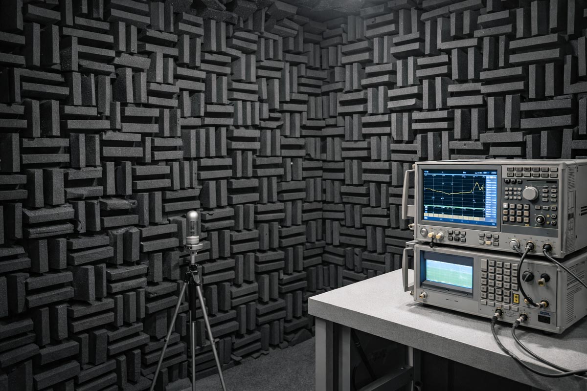 壁・天井・床に高い吸音性能を持つ素材を配置し、自由音場に近い音響環境を作ります。音響測定や研究、評価用途で使用されます。
